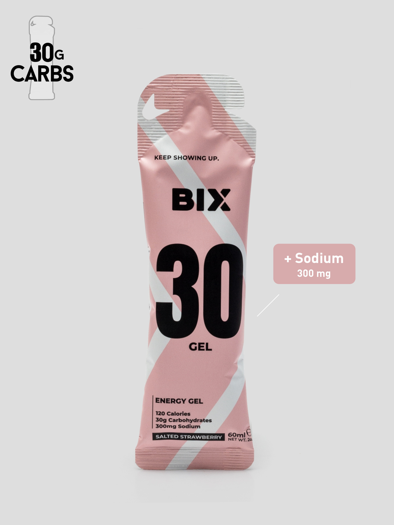 Keep your energy and electrolytes in balance with the Bix 30 Energy Gel. Each gel delivers 30 grams of fast-absorbing carbs, 120 calories, and 300 mg of sodium, perfect for hot conditions or long efforts where hydration is key. With a natural salted strawberry flavor, it’s smooth, light, and easy to take on the go. Designed to fuel you through workouts and races while being gentle on your stomach.